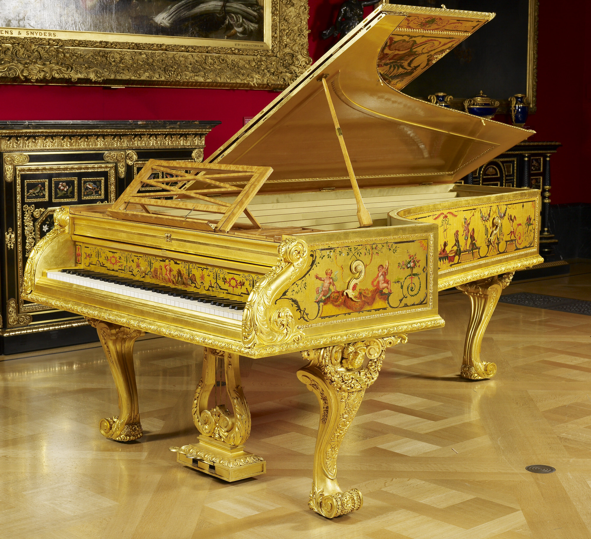 In de kunstcollectie van het Britse koninklijk huis bevinden zich een aantal bijzondere muziekinstrumenten. In de balzaal van Buckingham Palace staat een imposant orgel, en in de koninklijke werkvertrekken bevindt zich ook een gouden Erard-vleugel, die in de negentiende eeuw voor koningin Victoria is gebouwd. Tijdens de kerstspeech die Elizabeth in 2018 gaf, was het gouden instrument prominent te zien. Daarnaast bevat de koninklijke collectie een porseleinen fluit die toebehoorde aan George III en de basviool van de 18e-eeuwse basvirtuoos Domenico Dragonetti.