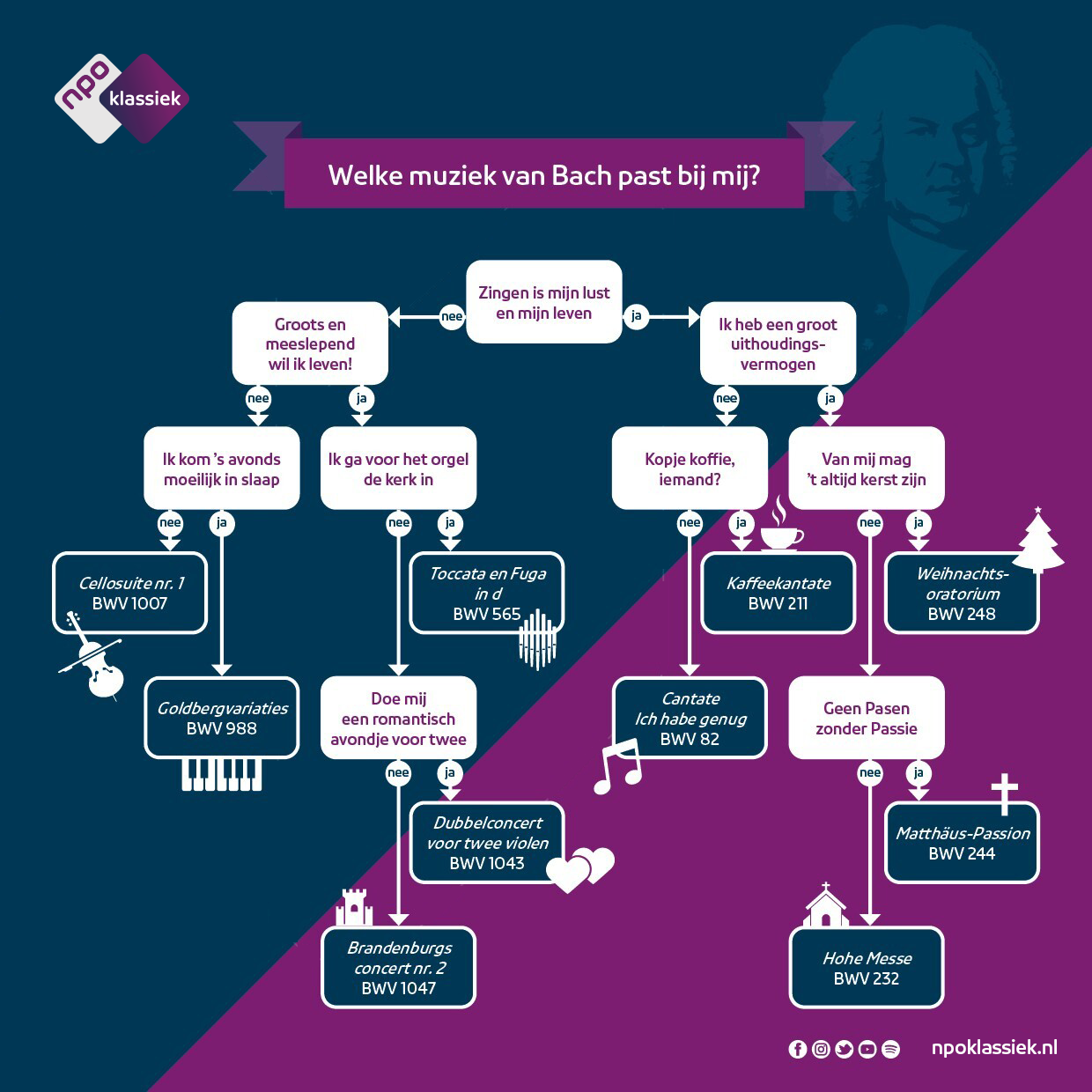 Welke muziek van Johann Sebastian Bach past bij mij? Goede vraag! Met dit handige stroomdiagram helpen we je om een keuze te maken uit het immense oeuvre van Johann Sebastian Bach.