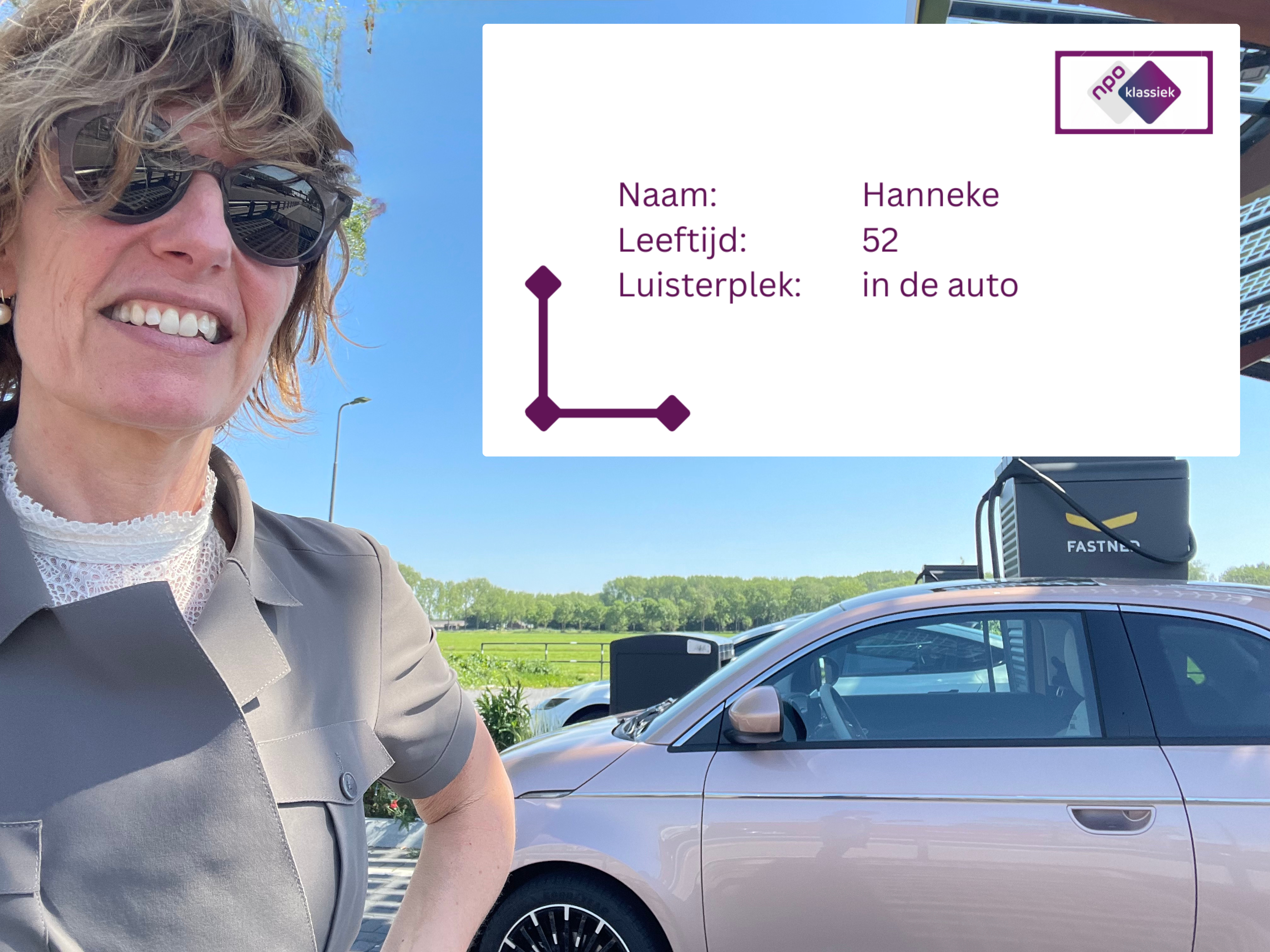 Hanneke is een luisterende liefhebber. Ze is, naar eigen zeggen, geen echte kenner, maar vindt de podcast een fijne manier om muziekstukken te ontdekken binnen een thema. Daarnaast vindt ze het een fijne manier om te kalmeren. Als ze ‘s ochtends vroeg op haar werk aankomt en de auto parkeert, luistert ze naar Kalm met Klassiek. Daarna kan ze geheel zen aan de werkdag beginnen. Het volume van de muziek speelt voor Hanneke ook een rol bij het ontspannen: “Des te harder de klassieke muziek staat, des te rustgevender het voor me is.”