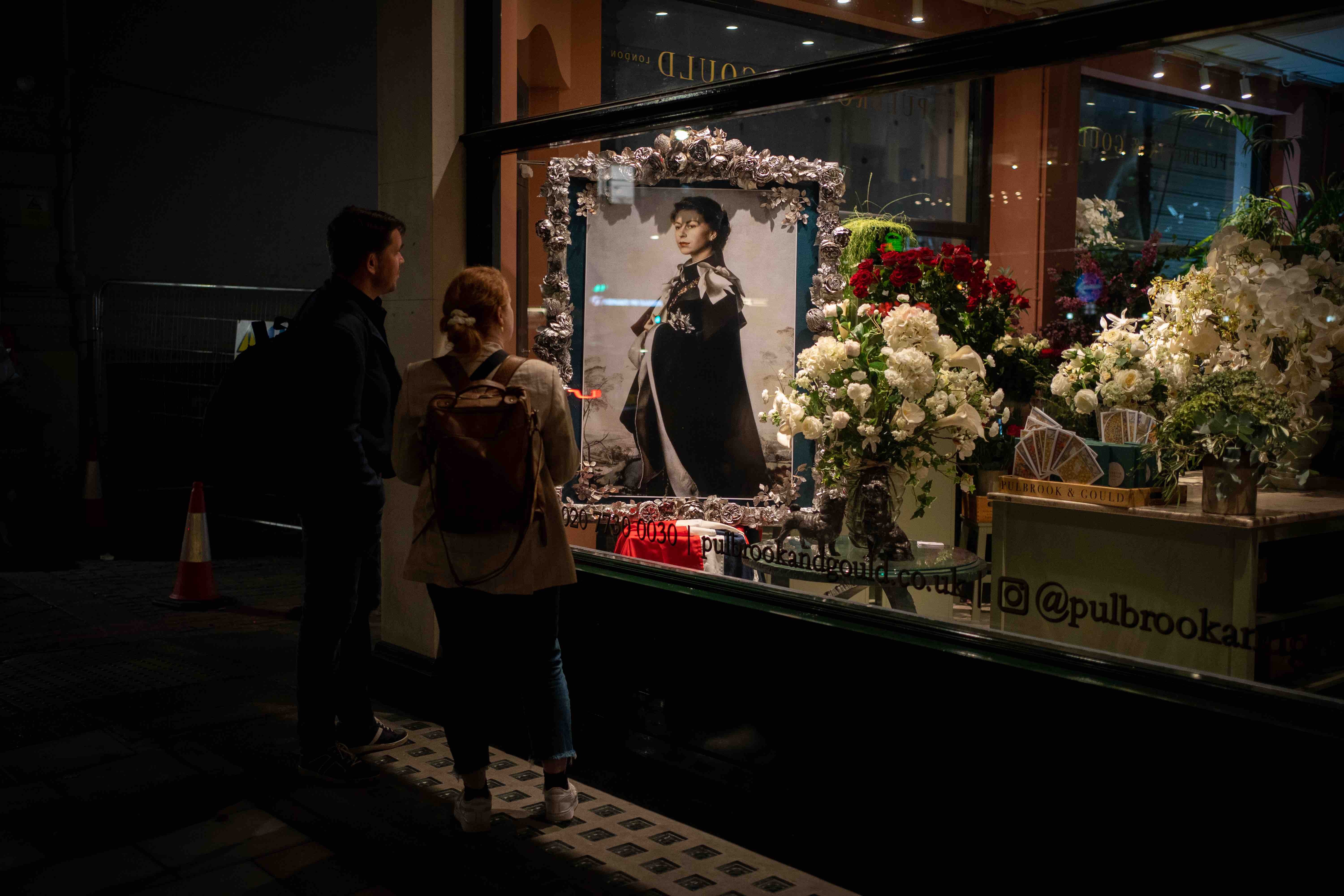 Ab Nieuwdorp & producer Jana Houben bij een portret van Queen Elizabeth II