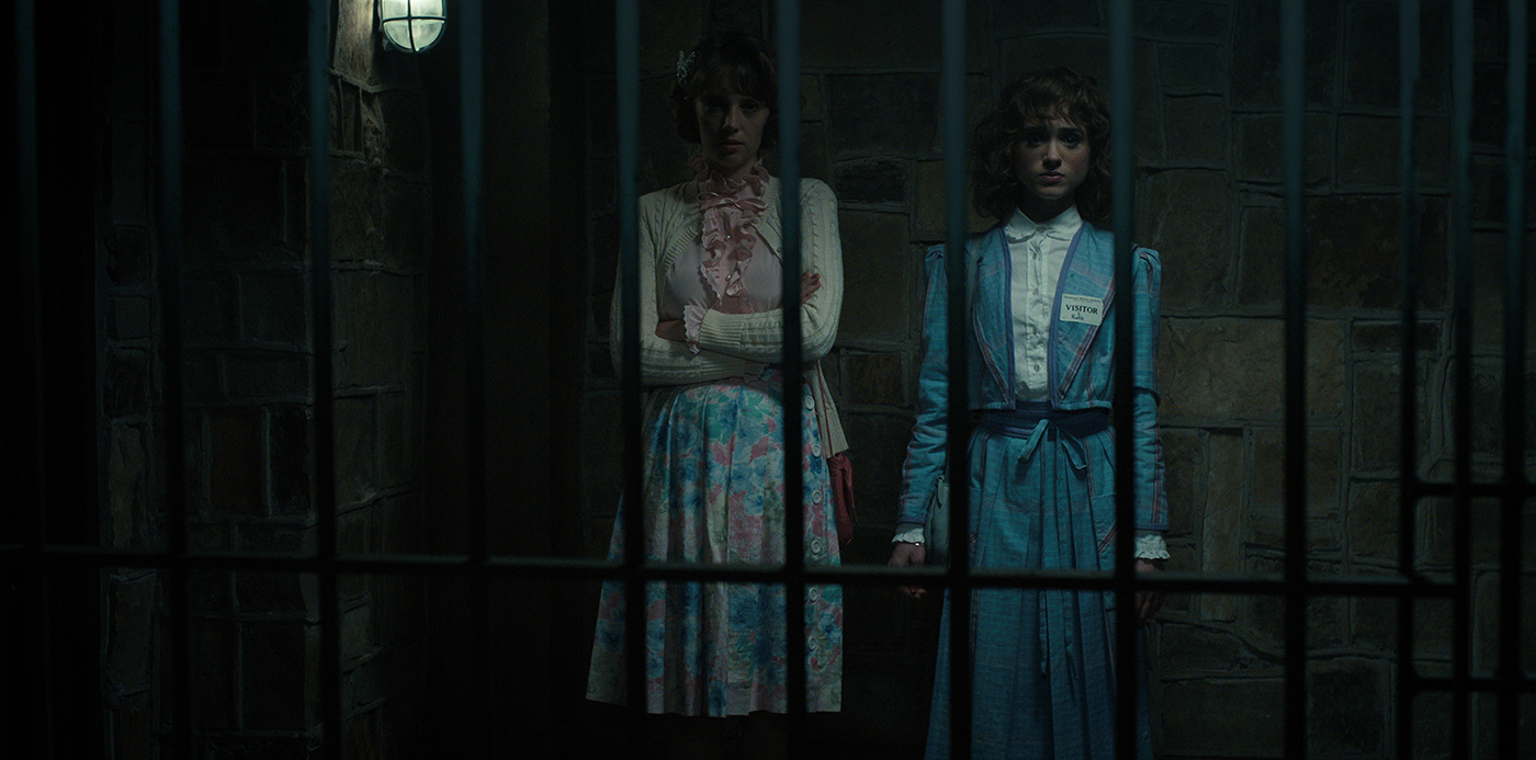 Setting (very Silence of the lambs-achtig): Nancy Wheeler (Natalia Dyer) en Robin Buckley (Maya Hawke) (⬆️) zijn op zoek naar Victor Creel. Creel is een aantal jaar geleden opgepakt op verdenking van het vermoorden van zijn gezin. De moorden uit die tijd lijken sterk op wat er nu in het plaatsje Hawkins plaatvindt. In Pennhurst doet het duo alsof ze voor hun proefschrift met Creel moeten spreken. Natuurlijk staan ze niet op de bezoekerslijst, maar met wat charme en doorzettingskracht lukt het de twee om toch een tête-à-tête met Creel te krijgen.