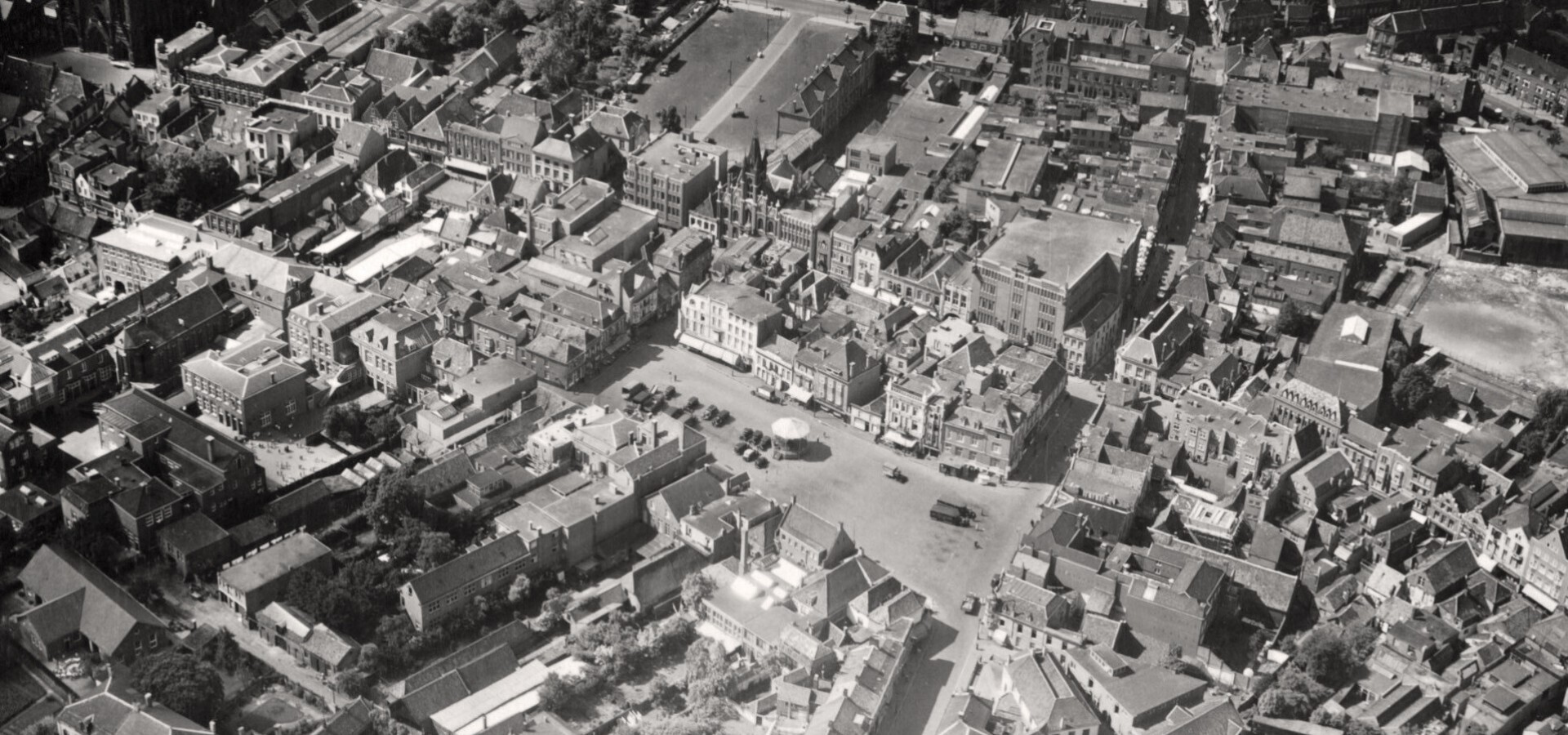 Linksonder het terrein van het Binnenziekenhuis, waar tegenwoordig Muziekgebouw Eindhoven gevestigd is.