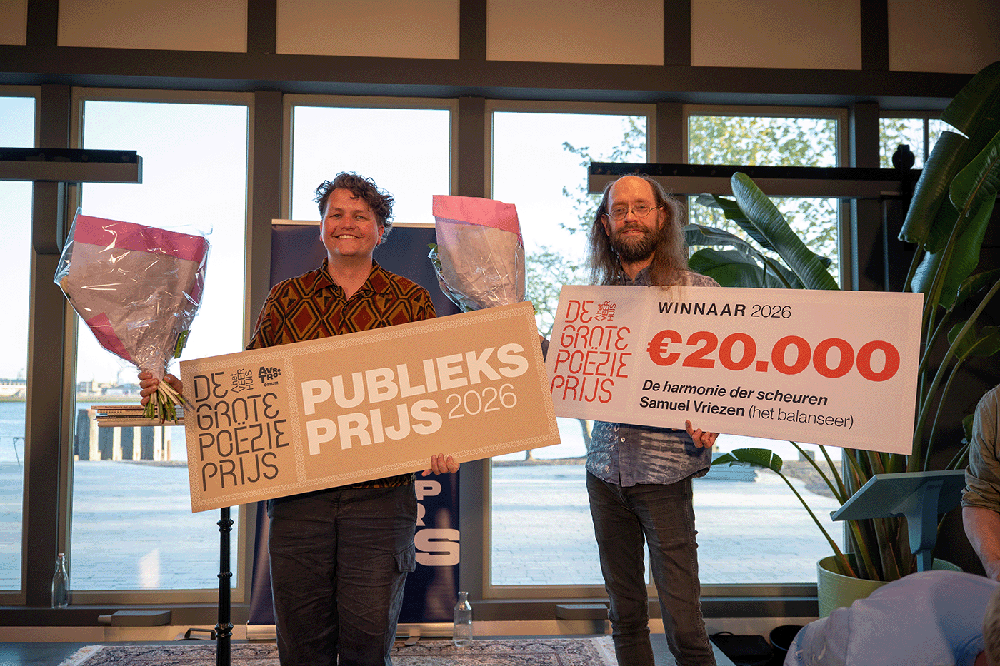 Samuel Vriezen mocht met zijn bundel De harmonie der scheuren (het balanseer) De Grote Poëzieprijs 2026 in ontvangst nemen. Aan de prijs is een geldbedrag van €20.000 verbonden.