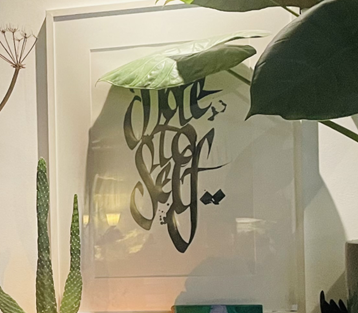 Mijn man en ik hebben een periode gehad dat we elkaar kunstwerken gaven en dit heb ik van hem gekregen. Het stond in zijn atelier. Ik hou van kunst, maar het schiet er bij in om veel naar musea te gaan. Werk van graffitiartiesten spreekt ons aan, het heeft iets bijzonders. Meulman kennen we ook. Zijn werk heeft iets kalligrafisch: het is meer dan graffiti. Dit werk staat dus bij ons thuis en het is een ‘note to self’ om me er dagelijks aan te herinneren dat ik een briefje aan mezelf schrijf, over hoe het gaat, dat het goed gaat, dat ik keuzes heb gemaakt en dat je ook niet moet inzakken. Dat ik trots mag zijn.