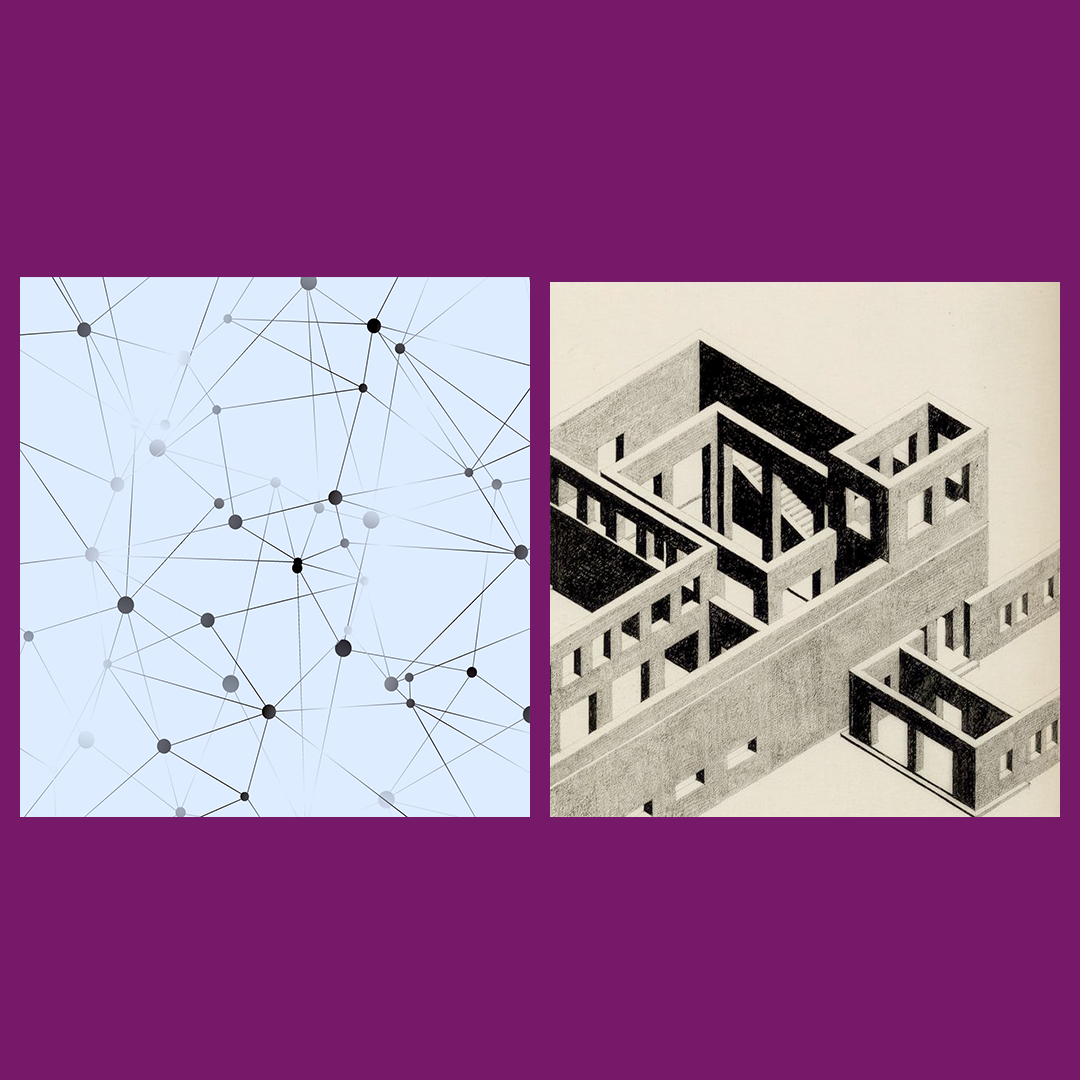 Foto links: ‘Harmonie der Sferen’, Foto rechts: Architectuurtekening, verhoudingen