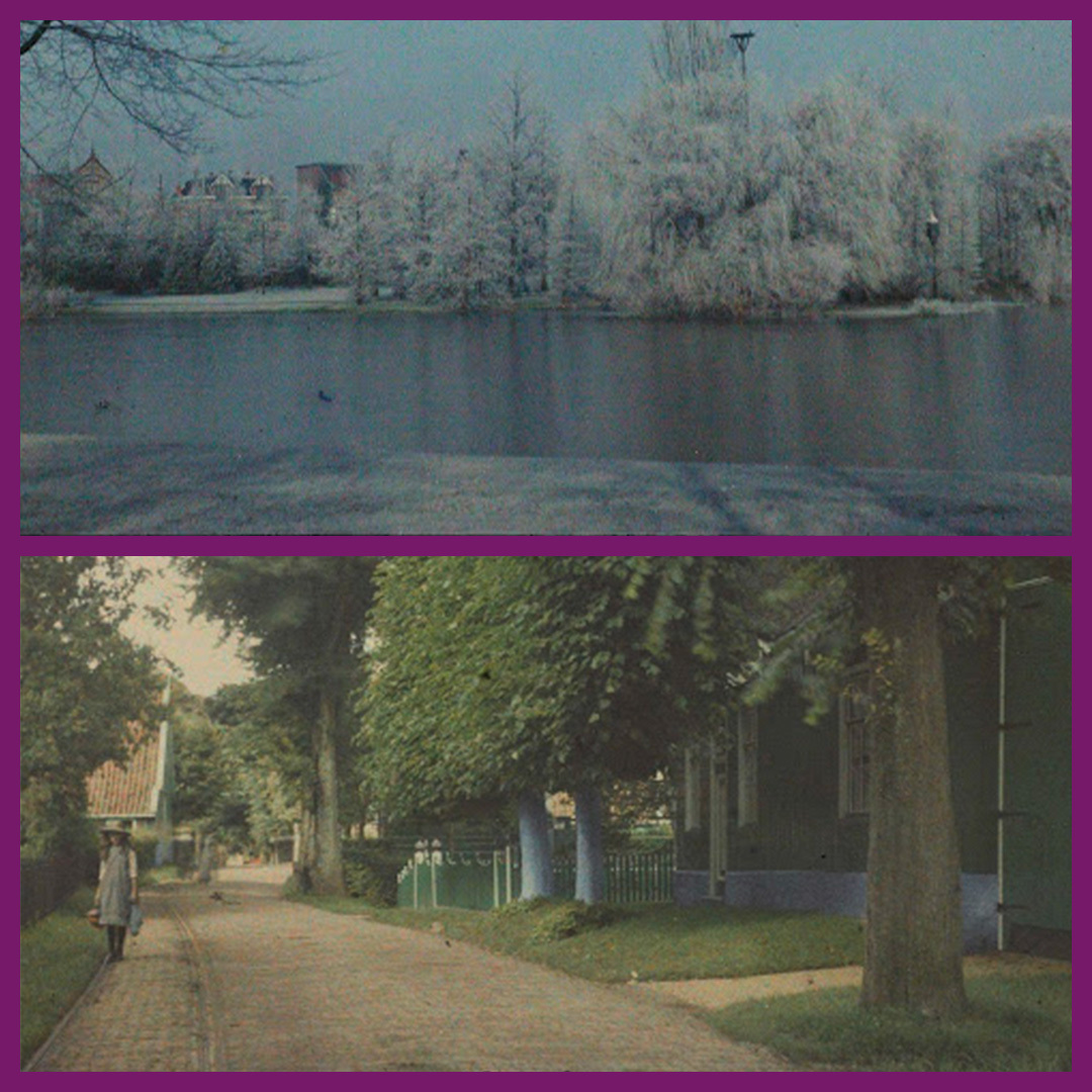 Foto onder: Gezicht op een laan in Hoogkarspel, Foto boven: Wilhelminapark, Utrecht, ca 1910