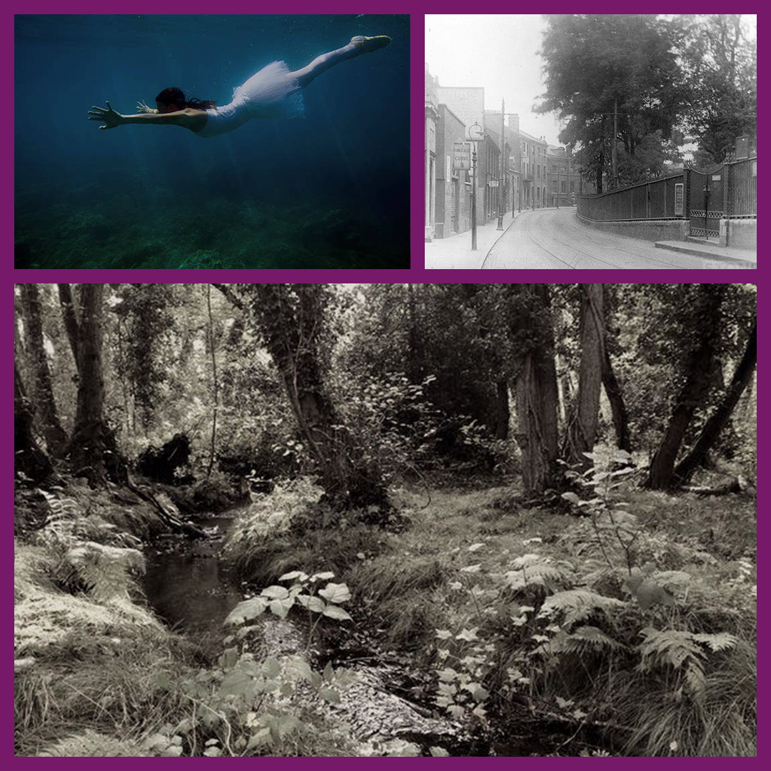 Foto linksboven: ‘Het zwarte water’; Foto rechtsboven: Norfolk, voor 1940; Foto onder: Norfolk, voor 1940