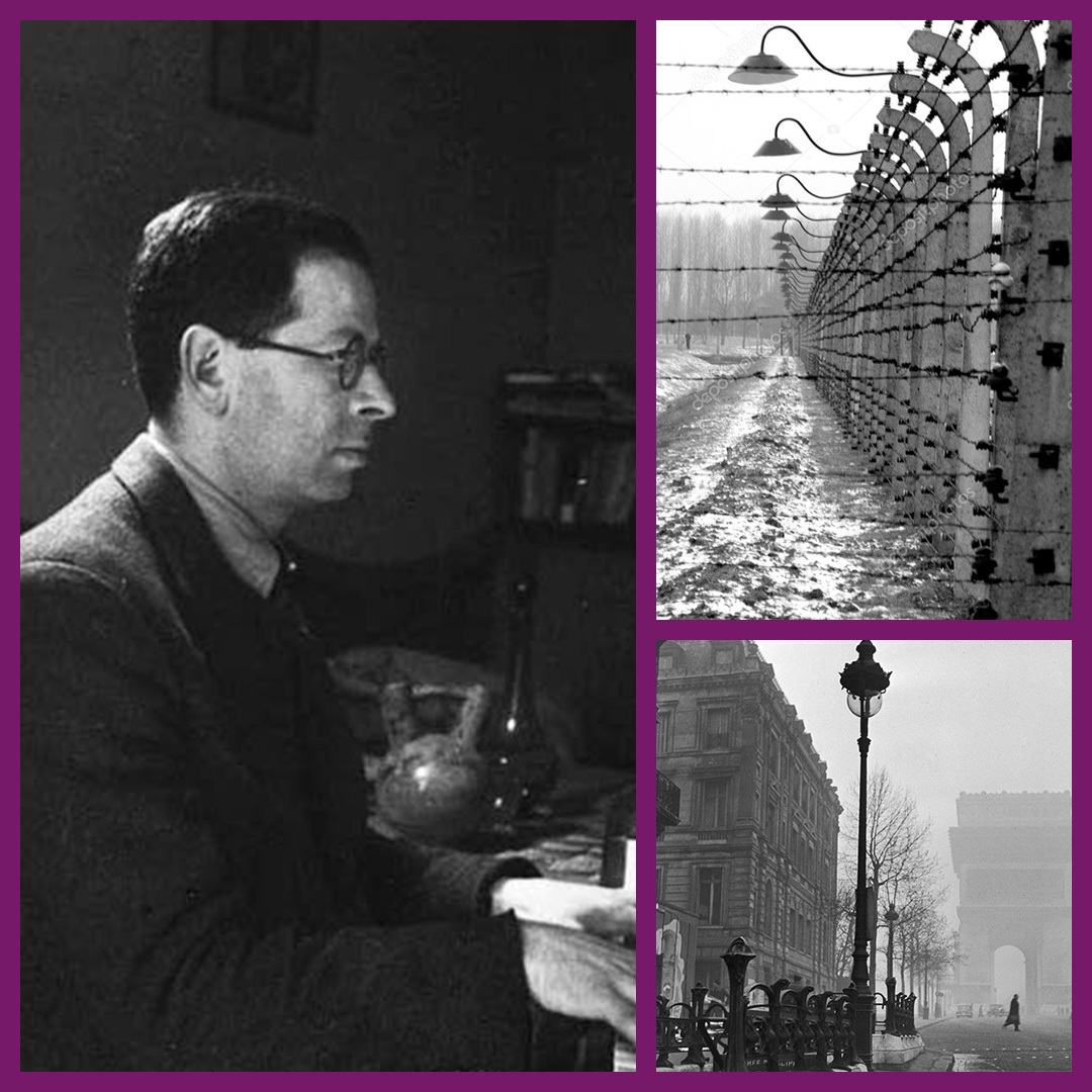 Foto rechtsonder: ‘Muziek uit een andere wereld’; Foto links: Szymon Laks; Foto rechtsboven: Prikkeldraad, hek, Auschwitz