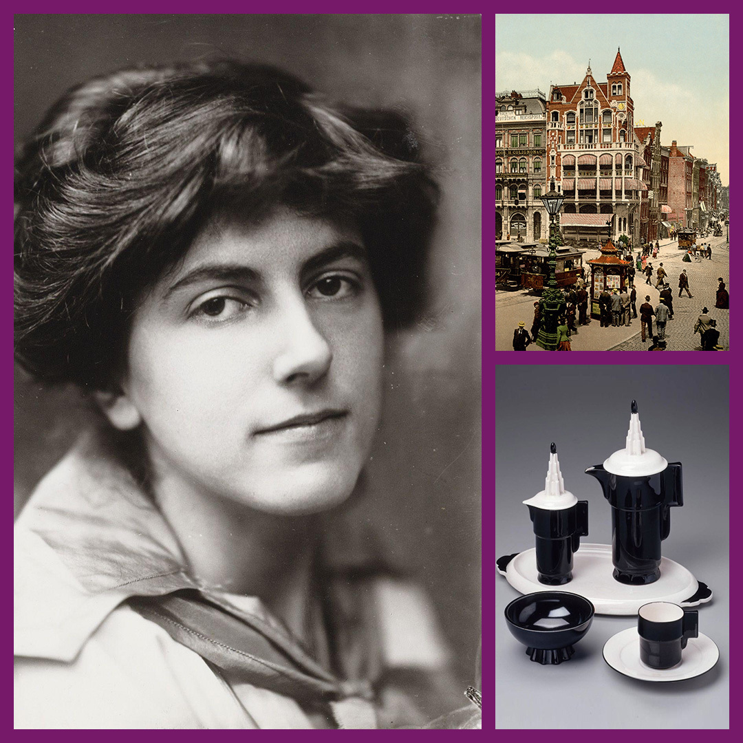 Foto links: ‘Zonder muziek is het leven onnodig; Foto rechtsonder: Thee-servies, Amsterdamse school; Foto rechtsboven: Amsterdam, 1927