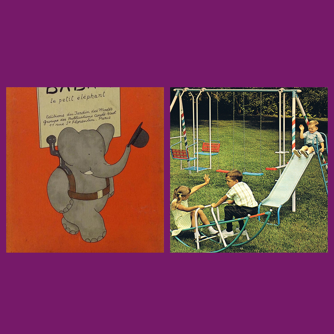 Foto links: ’18 Manieren om naar de staart van een jonge olifant te kijken’, Foto rechts: Spelende kinderen