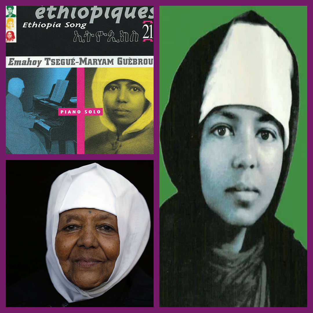 Foto linksonder: ‘De reiziger: Emahoy’; Foto rechts: Emahoy Tsegue-Maryam Guebrou; Foto linksboven: ‘Hoes, Ethiopiques vol.21