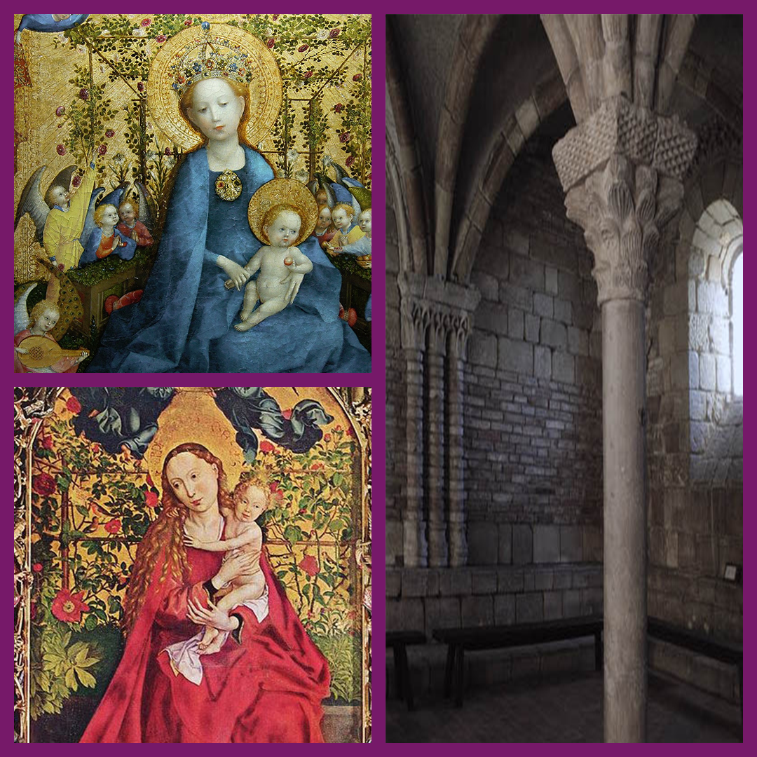 Foto linksonder: ‘Cantigas van lang geleden'; Foto linksboven: Maria; Foto rechts: Middeleeuwse kerk, Spanje