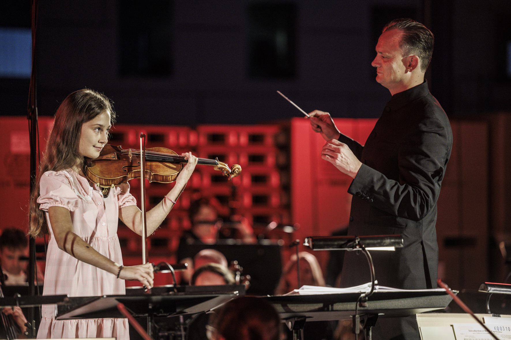 Dirigent Sander Teepen en violist Georgia Koumentakou bij het sponsorconcert