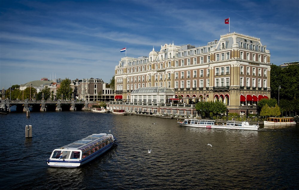 In de ochtend hoor je klassieke muziek in de lobby van het Amstel Hotel in Amsterdam.
