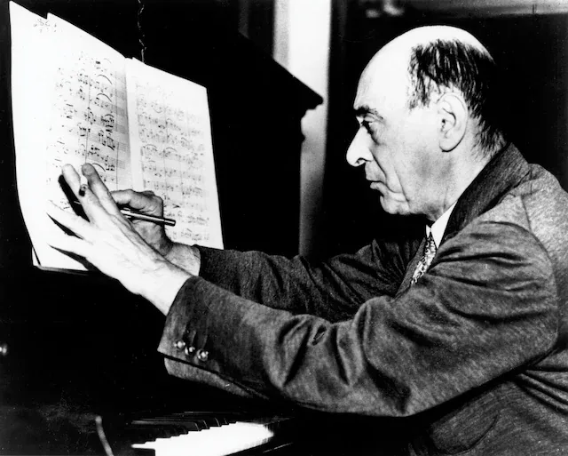 Arnold Schönberg (1874-1951) was een Oostenrijks-Hongaars-Amerikaanse componist en geldt als één van de meest invloedrijke componisten van de twintigste eeuw. Hij is voornamelijk bekend om zijn twaalftoonsmuziek. Dit vormde toen een nieuwe muziekstijl waarbij harmonie compleet werd losgelaten. Reeksen en formules bepaalden de gespeelde tonen.