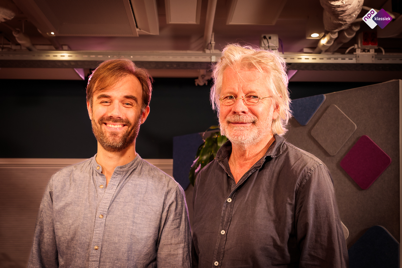 Accordeonist Vincent van Amsterdam en presentator Hans Haffmans na bekendmaking van de prijs in NTR Podium