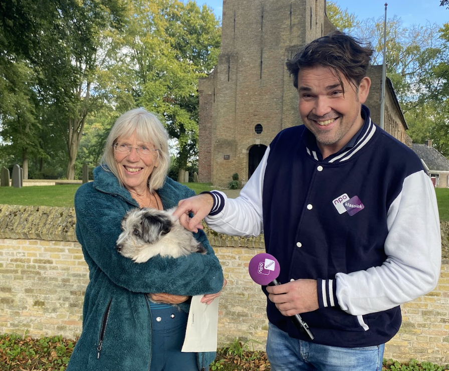 De bus is aangekomen bij de Bonifatiuskerk in Oldeberkoop. De stemtip van Marilen en haar puppy, die ze pas sinds gisteren heeft, is: Pater Noster - Peteris Vasks. Het hondje wordt rustig van klassieke muziek, vertelt Marilen.