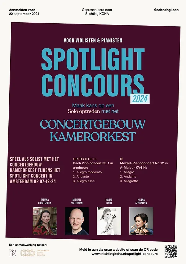 Ben jij of ken jij jong talent dat wil deelnemen aan het Spotlight Concours van dit jaar? Aanmelden kan tot 22 september 2024 en de leeftijdsgrens voor dit concours is 18 jaar. Ga voor meer informatie naar stichtingkoha.nl.
